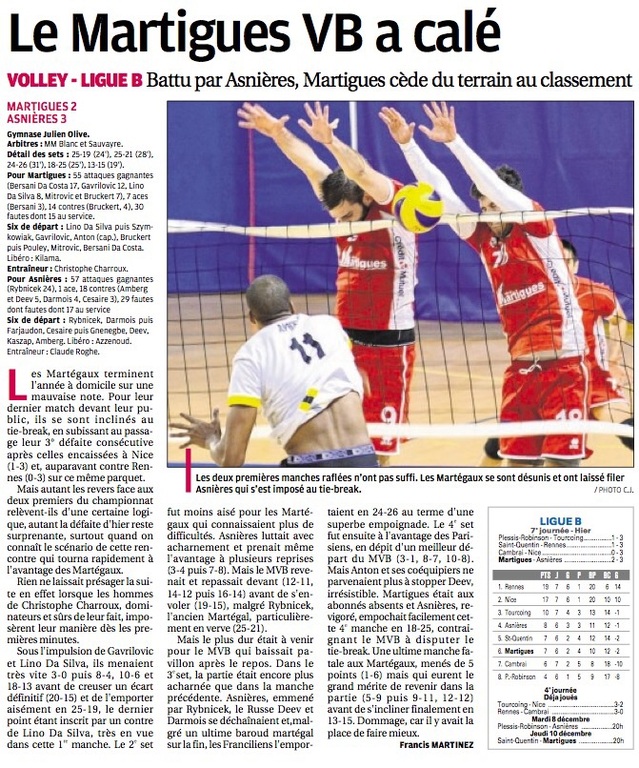 Le quotidien La Provence est un spectateur assidu de nos rencontres de Ligue B. Samedi c'est Francis Martinez qui est venu suivre la rencontre. Regardez son article et continuez à suivre nos aventures dans les pages sport du quotidien La Provence.