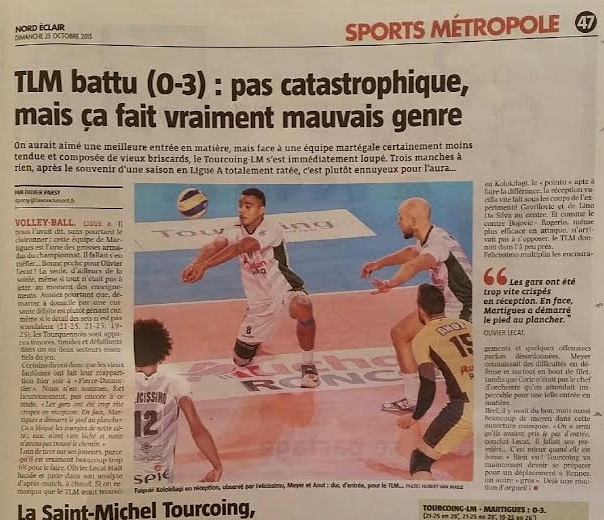 Pour Nord Eclair c'est une équipe martégale '' certainement moins tendue et composée de vieux briscards''. Dans son article, Didier Parsy cite Olivier Lecat l'entraîneur de Tourcoing :'' les gars ont été trop vite crispés en réception. En face, Martigues a démaré le pied au plancher''.