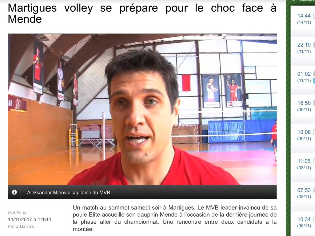 Notre partenaire Maritima Medias prépare le match face à Mende notre dauphin ce samedi à Olive. Après le déplacement victorieux à Fréjus, cette rencontre face à Mende est capitale dans la perpective des play-offs (où nous conservons les points acquis face à des adversaires de la première partie du championnat qui s’en retrouvent eux aussi en play-offs). Regardez la vidéo avec notre capitaine . On compte sur vous samedi pour venir encourager nos Sang et Or.