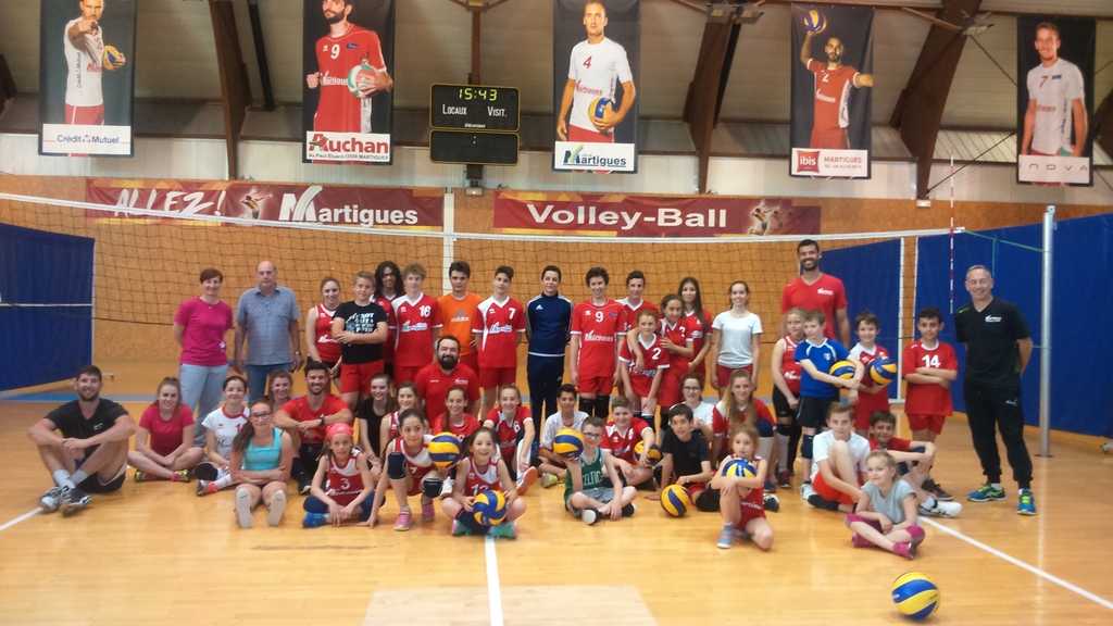 Des Pros qui s'occupent des petits, Fodil et Christophe deux entraîneurs Sang et Or qui sont également à l'ouvrage et pleins de petits . C'est le Volley comme on l'aime. Après un stage à la Toussaint , Martigues Volley rassemble à nouveau pour former des jeunes. Au milieu des stagiaires, notre président lui aussi semble rajeunir ! Bravo les Sang et Or, petits et grands.