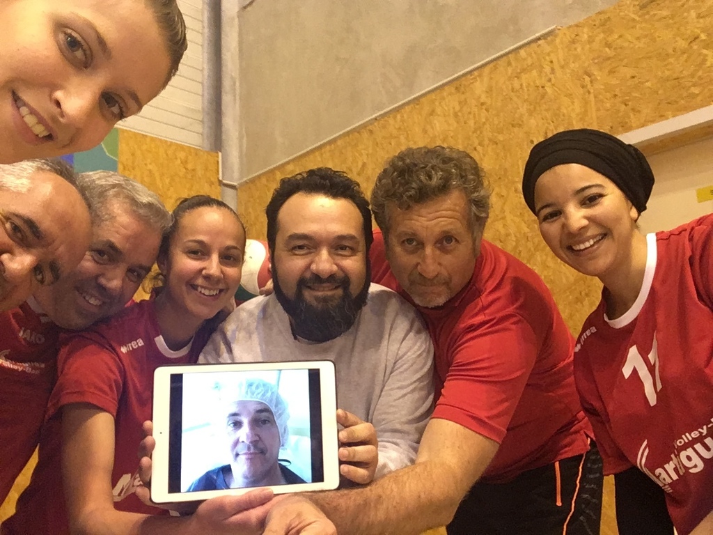 Pendant que leur compère Fabrice était encore sur son lit d'opération, les Loisir en déplacement à Salon hier lui ont adressé un clin d'oeil complice. Le selfy d'avant match lui est dédié: Les ''Reds'' sur le terrain et Fabrice en portrait au centre! On joue ensemble, tous ensemble et Martigues s'impose trois sets à deux au bout du suspense. Du match on retiendra quelques moments particuliers: la ''corse'' de Stef ( énorme la corse ... avec le bon timing et on fait le point derrière !) le coup de main de Fodil venu en voisin ( quel apéro !), les ''plongeons'' de coach Jean-Charles ( oui oui c'est bien au pluriel avec un plongeon arrière victorieux dont Julie ne s'est pas remise'', bref la solidatité de notre équipe mixte ( vraiment mixte) plus les mêmes ingrédients que d'habitude. Martigues remporte sa double confrontation contre Salon. Encore deux rencontres à Olive contre Ensuès puis à Saint-Cannat et le challenge inter-ville sera terminé. Il y a du monde à l'entrainement et de l'engagement en match. Le Loisir Sang et Or se porte bien.