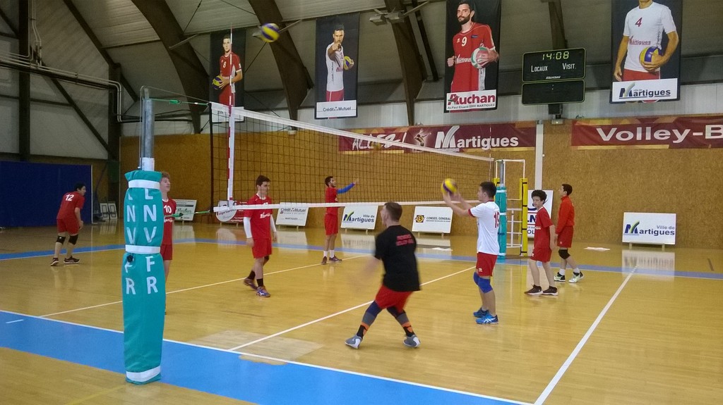Bonjour. Défaite du second, Martigues VB face au premier Aubagne Carnoux VB par 3 sets à 1. Les jeunes martégaux se sont battus comme des lions mais la blessure de Chaker, (luxation de l'auriculaire droit) a grandement diminué le rendement du groupe. La prestation d'Adrien, transcendé par la présence de son frère dans les tribunes a contribué à élever le niveau de jeu du groupe. Mené 8/0 au premier set, nous remontons au score pour finir le set 25/20 pour Aubagne. Nous remportons la seconde manche 26/24 après une course poursuite haletante et épuisante pour les deux équipes. La troisième manche va à l'avantage d'Aubagne, 25/18. Le dernier set, le groupe a tout fait pour l'arracher. Il nous échappe 26/28. L'équipe a d'excellentes raisons d'être fière du spectacle produit dans un esprit très fait play malgré l'enjeu. Pour un beau spectacle, il faut de bons acteurs. Ce fut le cas des deux côtés du filet. Nous ne sommes plus maitre de notre destin. Aubagne est averti que nous serons à l'affut de toute erreur de leur part.