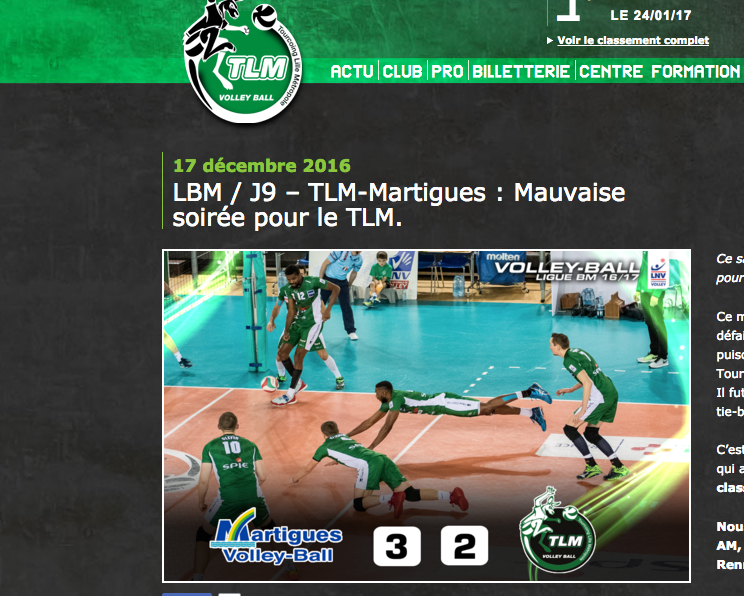 Vu sur le site internet du club de Tourcoing. Martigues qui s'impose à Olive lors du match aller. Victoire trois sets à deux après avoir mené deux à zéro ... On peut... faire beaucoup de choses samedi à Tourcoing. C'est ce que notre duo de coach Christophe et Tudor doit expliquer à nos joueurs toute cette semaine. Allez Martigues, ça va chauffer samedi soir devant le live vidéo de la LNV. Tourcoing n'a perdu que trois match cette saion, dont une défaite devant nos Sang et Or.