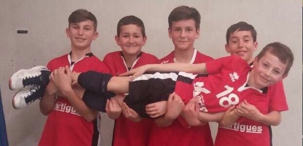 Ou plutôt gagné cinq sur cinq! 5 c'est l'addition des victoires des M15 (samedi à Aix contre Aubagne et Aix) aux victoires des M13 (dimanche à Marignane contre Ajaccio Aix et Marseille). Le joueur à l'horizontale est le ''jeune'' de la formation: Titouan porté par les plus grands, c'est un exemple de la solidarité Sang et Or . Un bon week-end de jeunes dans le sillage de nos Pros, victorieux contrer Epinal.