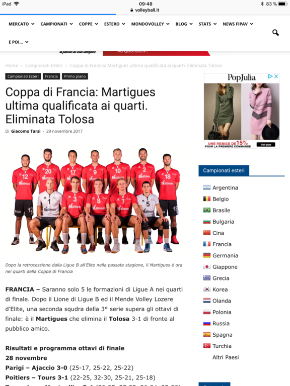Vu sur le net : nos héros Sang et Or mis en avant sur un site italien de volley-ball. Hier soir c’etait le bonheur et ce matin c’est la fierté. Bravo Martigues