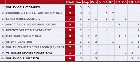 25-21, 25-11 et 25-13. déplacement difficile aujourd'hui pour notre prénat'. Au classement ( provisoire car Beaucaire et vedene s'affronte le 05/11) on est sixième.