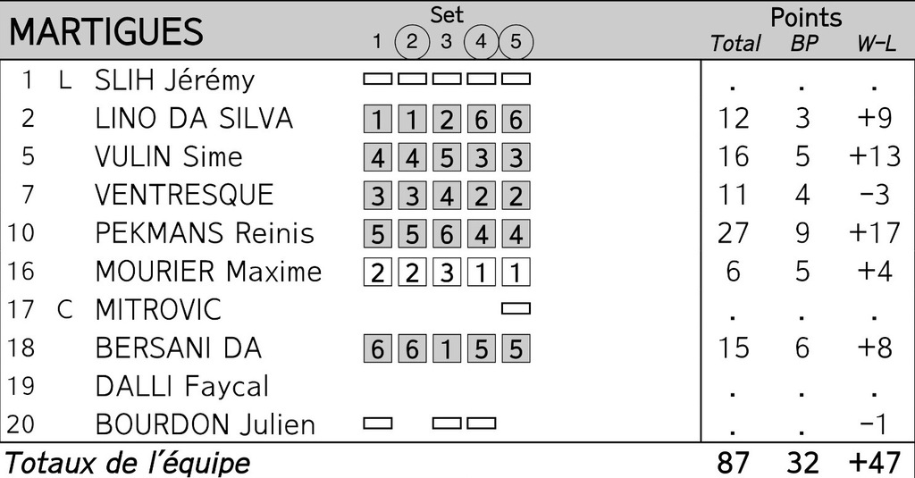 Nos Sang et Or s’imposent au bout du suspense : 13/15 au tie-break .  Bravo, deuxième victoire en deux rencontres, on est cinquième avec quatre autres Ă©quipes invaincues.Â