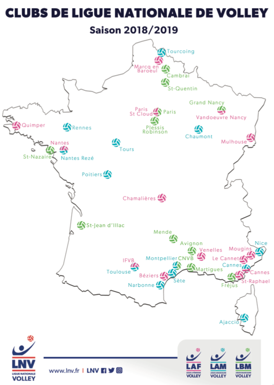 Voici les 39 équipes qui évolueront dans les championnats de Volley Pro la saison prochaine : |