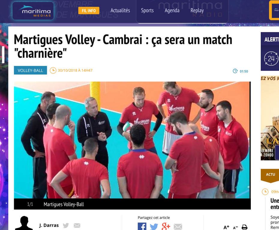 Jean-Michel Darras reporter Maritima médias a pu assister au débrief du déplacement à Saint-nazaire ( on passe vraiment pas loin de l'exploit) et il a pu discuter avec les Pris de la préparation du choc face à Cambrai. Cambrai certainement une des trois plus grosses formations de ce difficile championnat de Ligue B.