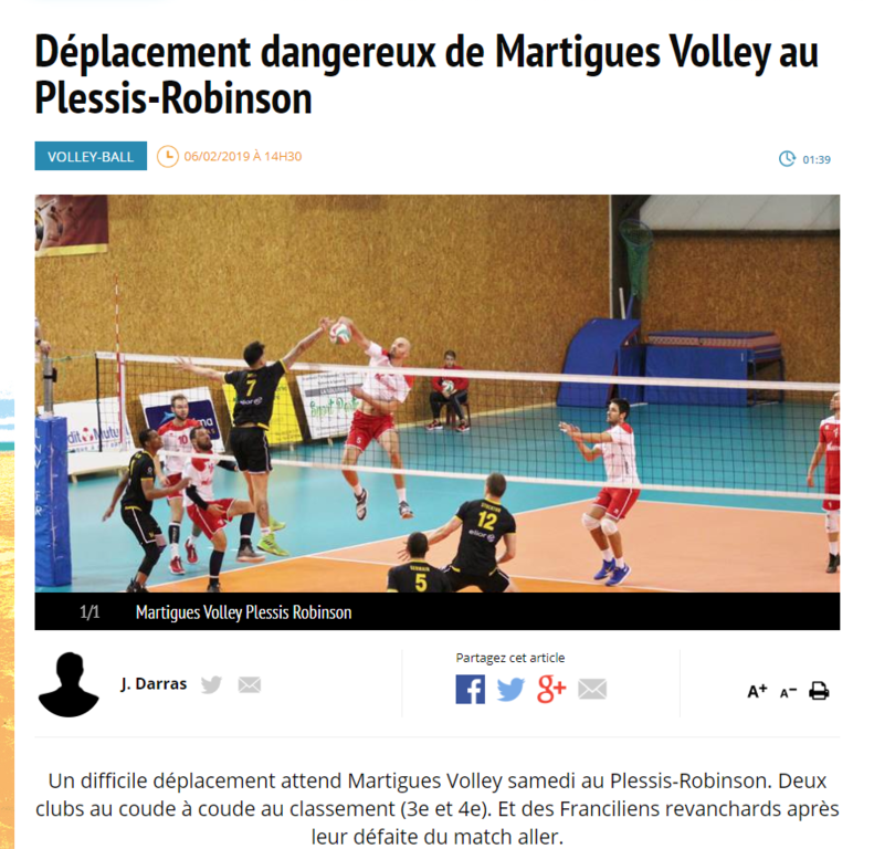 "Déplacement dangereux au Plessis" titre notre partenaire Maritima Médias. Le Plessis Robinson c'est une salle où Martigues a rarement brillé. On compte sur nos Sang et Or pour continuer sur leur lancée. Cliquez sur le lien suivant pour lire l'article de JM Darras. Tous ensemble derrière les Martégaux !