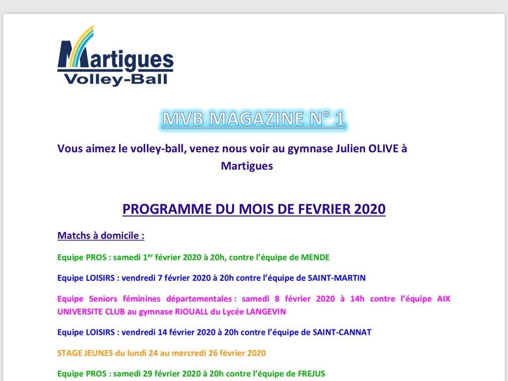 Après le site internet, Twitter, Facebook, Instagram voici que votre club lance une news. Distribution en direction des licenciés jeunes et moins jeunes par mail avec des rdv et des photos.