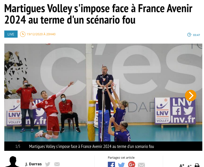 On a souffert, d'abord dans les corps avec les blessures de Raphaël Attié et de Kévin françois. On a souffert car il a été nécessaire de jouer différents avec à certains moments Reinis Pekmans et Julien Bourdon qui ont du prendre des receptions. Marko Milovanovic a été lancé dans le grand bain par le coach. Entre temps on a remporté le premier set, perdu les deux suivants et le collectif a trouvé des ressources pour remporter le quatrième et le tie-breack. Bravo Martigues. grosse performance collective.