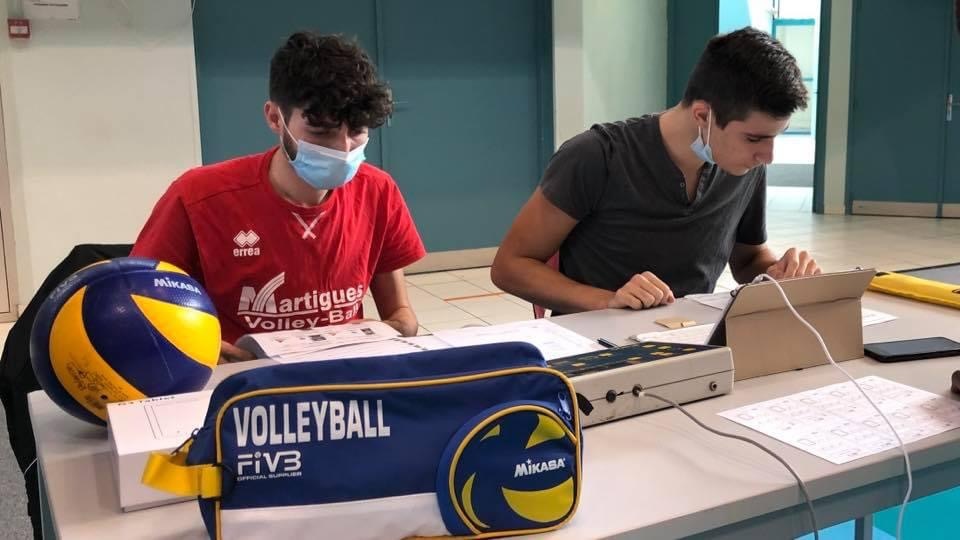 Nationale 3 : Martigues / Fréjus. il y a des jeunes appliqués à la table de marque. Feuille de match numérique « à la tablette » un grand bravo à Louis et Théo.