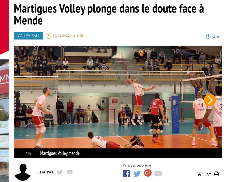 Martigues Volley plonge dans le doute. Cliquez sur ce lien pour lire l'article de Jean-Michel Darras