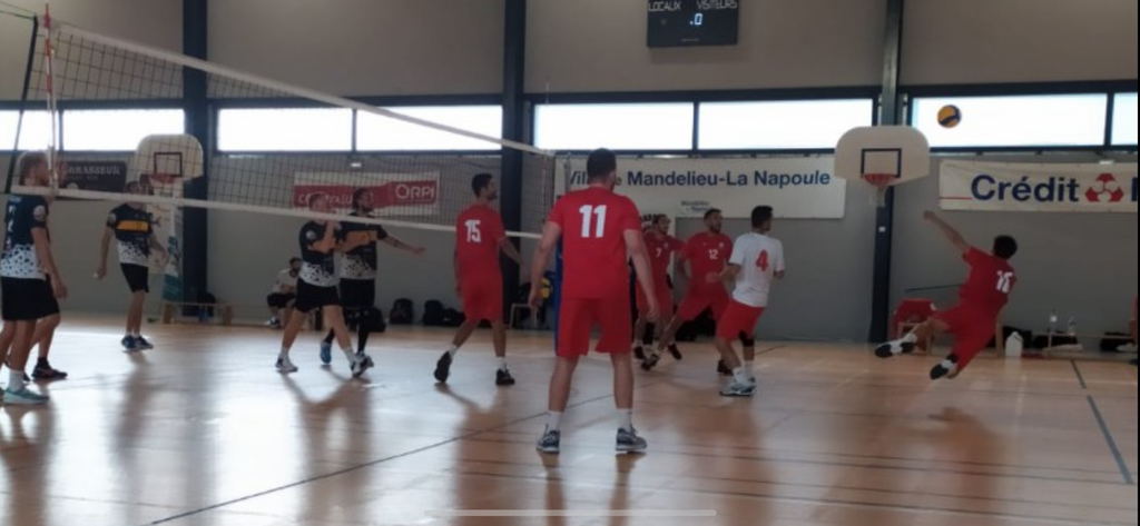 Une défaite 3-1 pour notre N3 aujourd’hui à Mandelieu-la-Napoule . L’équipe coachée par Haroldo remporte le premier set (17-25) et s’incline ensuite (25/22, 25/21). La quatrième manche est acharnée et Mandelieu remporte finalement le match (26/24) . Merci Christine Altieri pour la photo.
