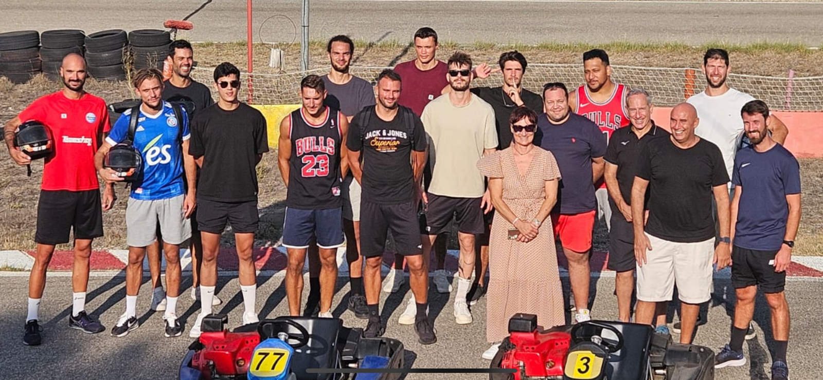 Voilà la première photo de famille de notre effectif pro 2024-2024. Les arrivants vous ont été présentés individuellement sur les réseaux sociaux. Voilà une belle photo de groupe réalisée sur la piste de karting de Martigues à l'occasion de la journée de cohésion. L'effectif pro, le staff et une partie du comité directeur. Allez Martigues !