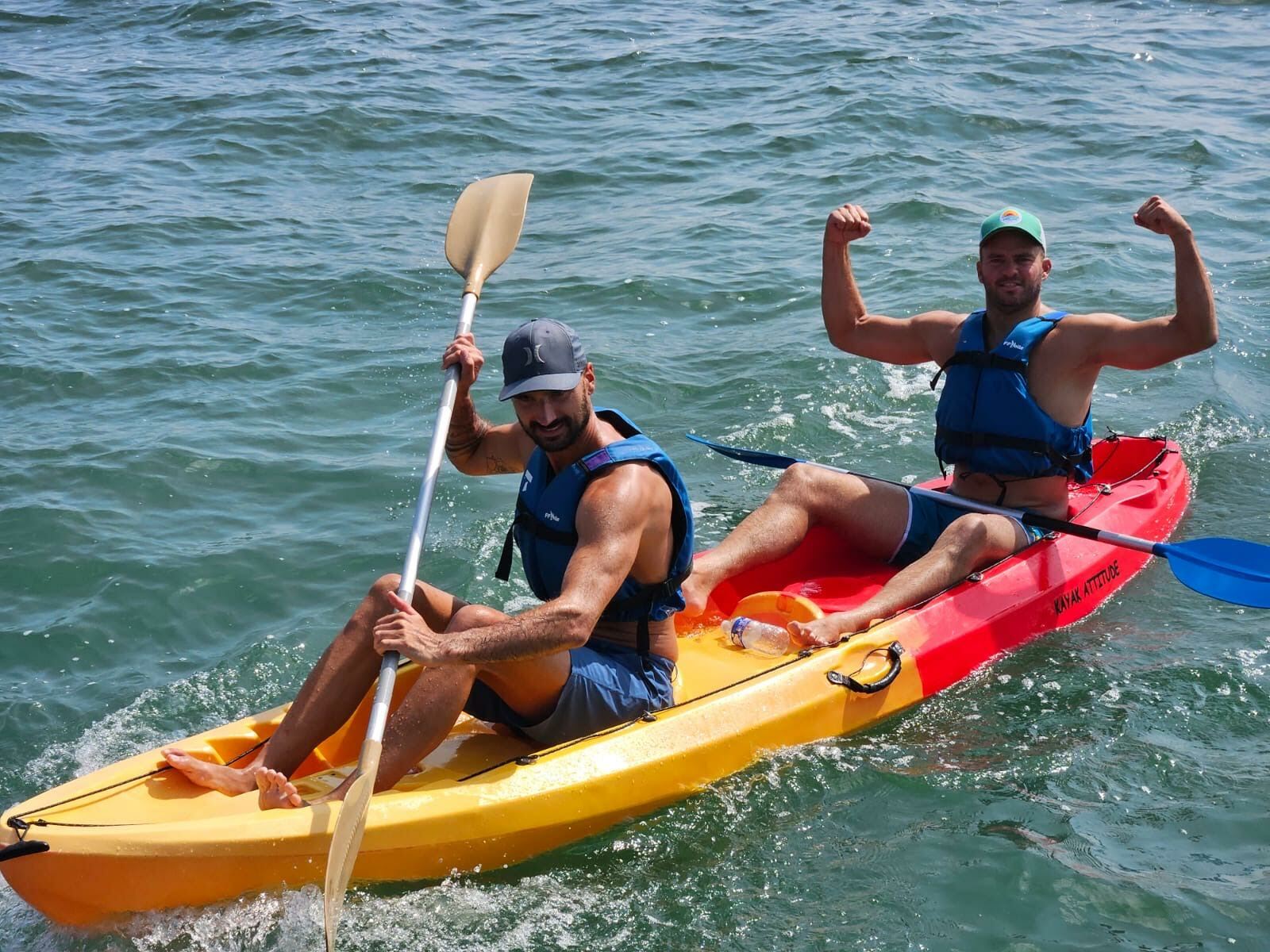 Raph' et Manu sont sur un bateau et personne ne tombe à l'eau ! Comme à chaque début de saison, les club pros organisent une journée de cohésion pour créer plus rapidement du lien entre nouveaux et anciens. Cette année le comité directeur du mvb a choisi une journée kayak sur les canaux et Kart sur la piste de la route de Saint-Pierre. A voir l'agilité sur l'eau de notre équipage ''récep''' avec Raphaël et Manu, on se dit que Martigues peut être serein pour cette prochaine saison de Ligue B. Un grand merci au CVM et à l'association sportive de Karting de Martigues qui ont rendu ces bons moments possibles.
